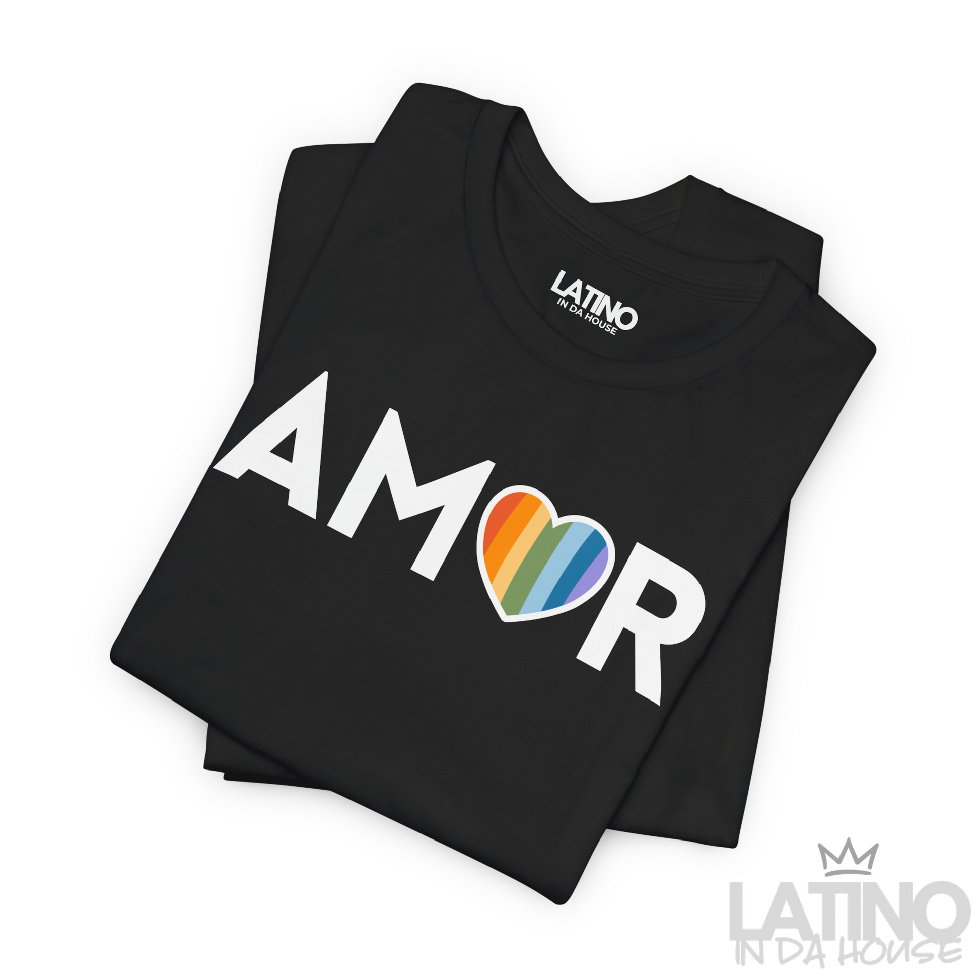 Keep it clean and powerful with our AMOR tee — a minimalist wordmark where the “O” becomes a rainbow heart. Modern, logo-free, and made to celebrate love every day.