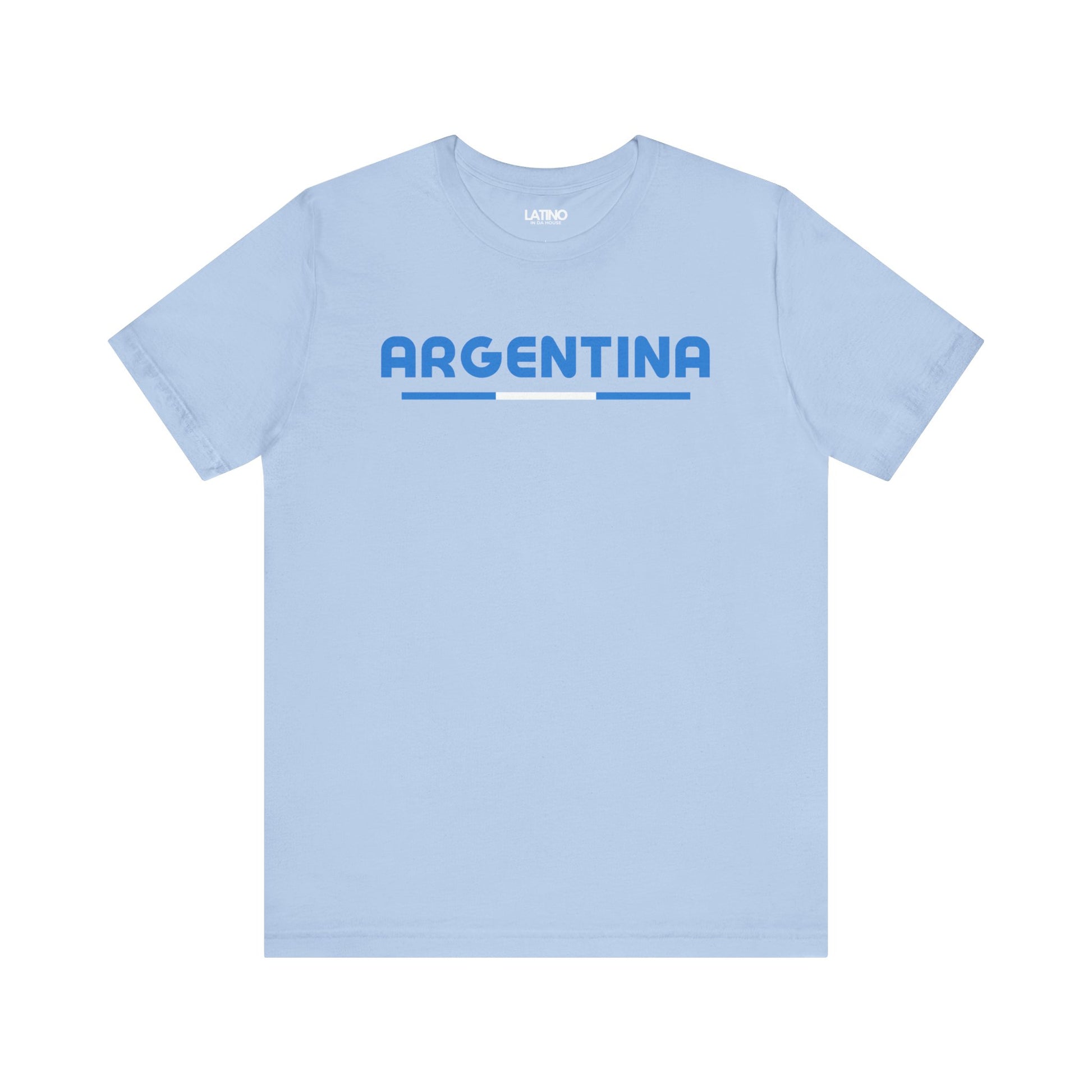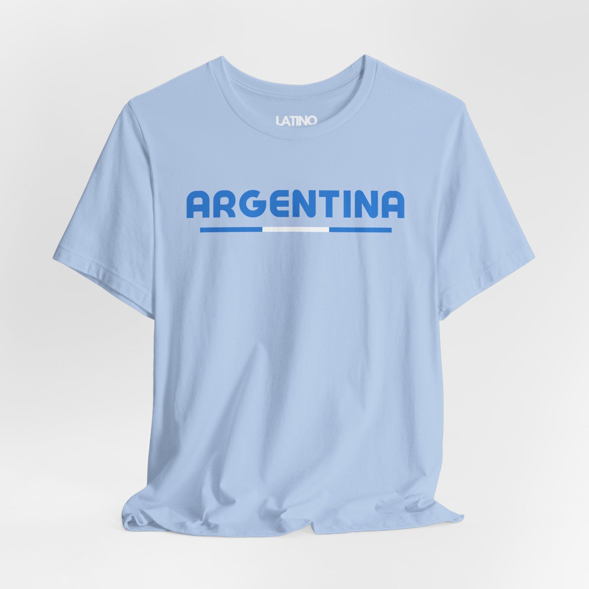 Show your love for Argentina with this stylish unisex T-shirt featuring bold blue lettering with a sleek underline design. The iconic "Argentina" text stands out, making it a statement piece for anyone proud of their Argentinian roots. Crafted from 100% soft and breathable cotton, this T-shirt offers a perfect blend of comfort and durability for all-day wear.