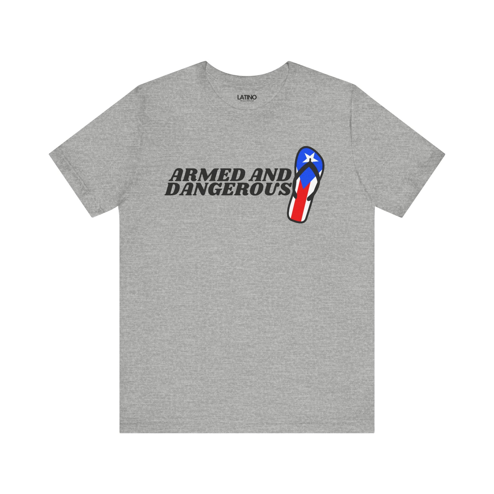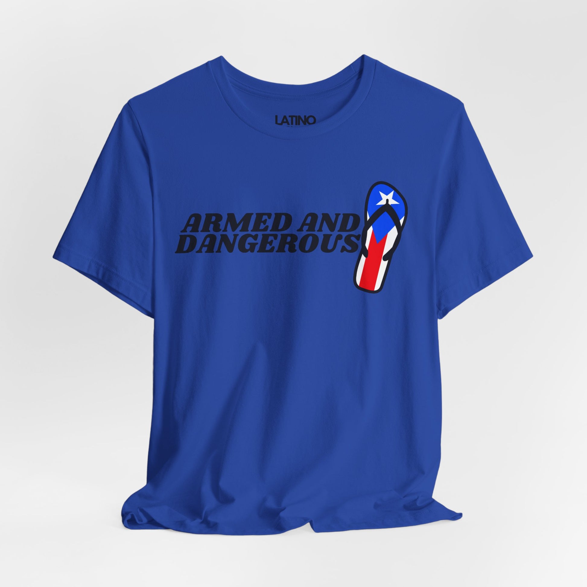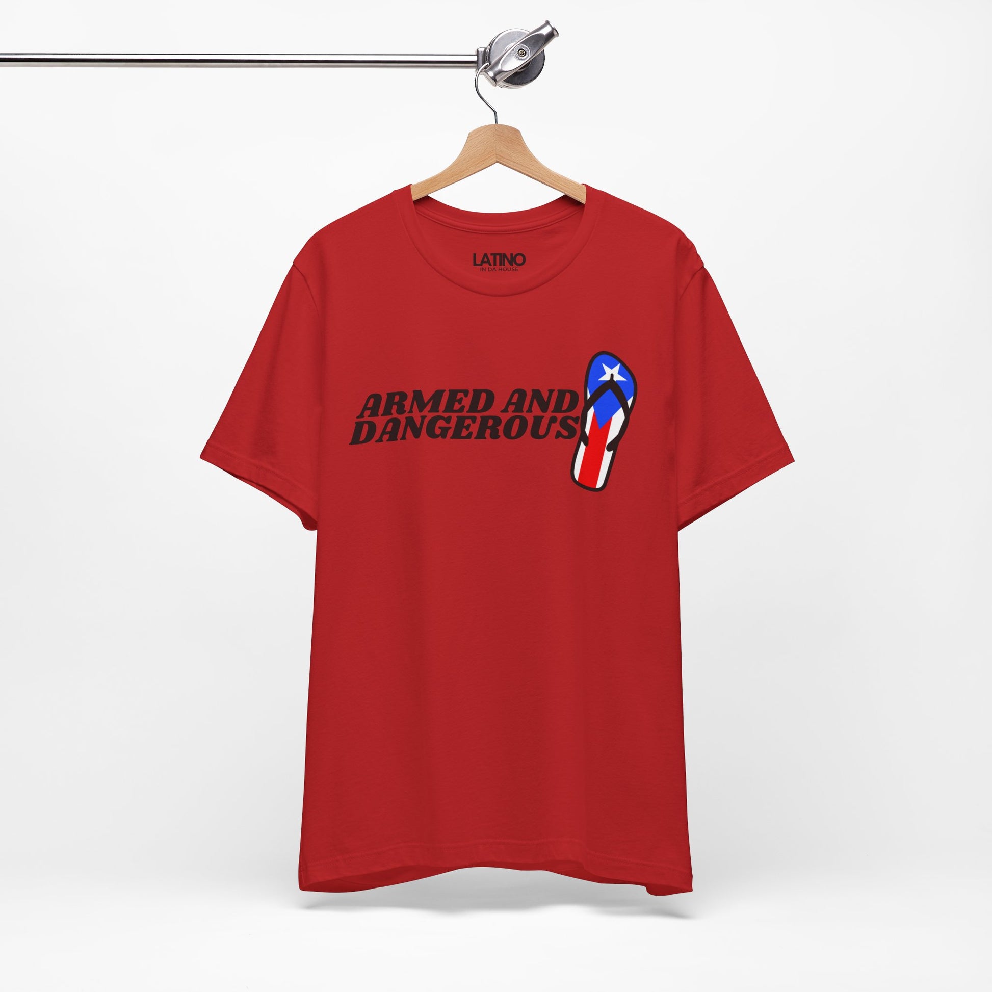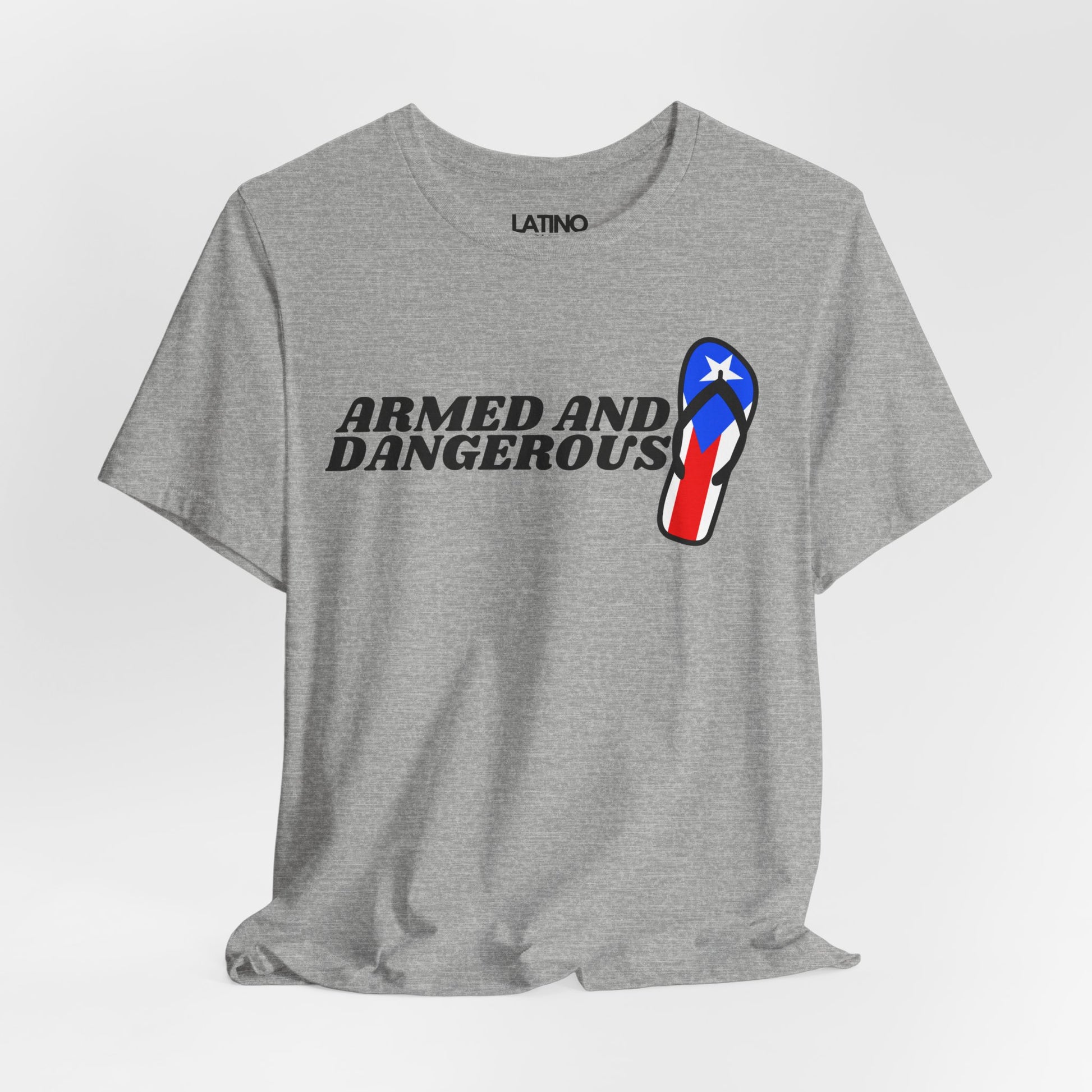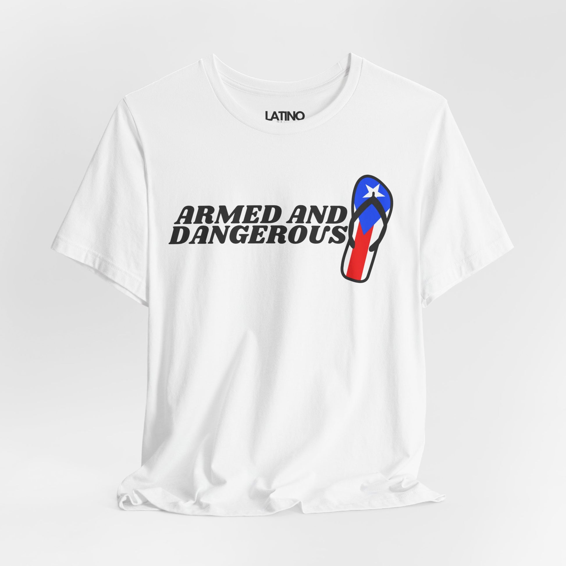 "Armed and Dangerous Chancla" T-shirt – A Fun Twist on Latino Culture