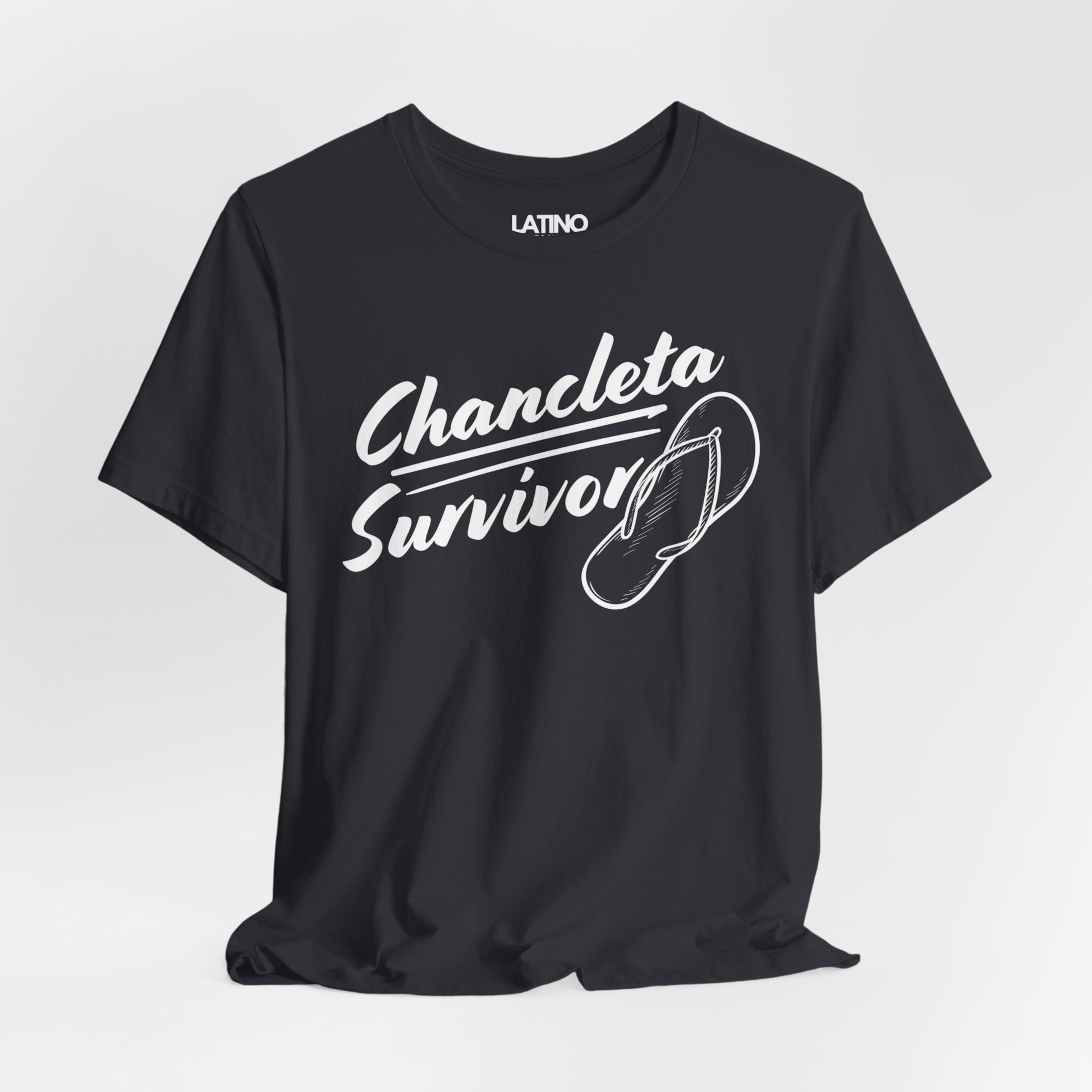 Order Now: Show the world that you survived the chancleta! Click 'Add to Cart' now to get your "Chancleta Survivor" T-shirt and share a laugh about a shared cultural experience.