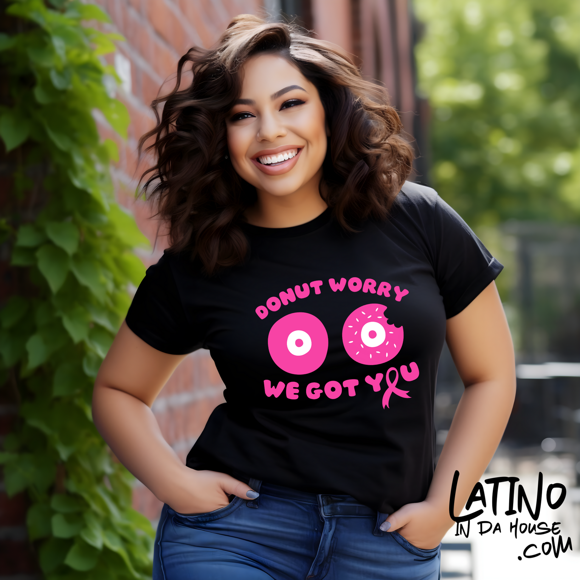 - Fun and supportive donut-themed design with pink ribbon