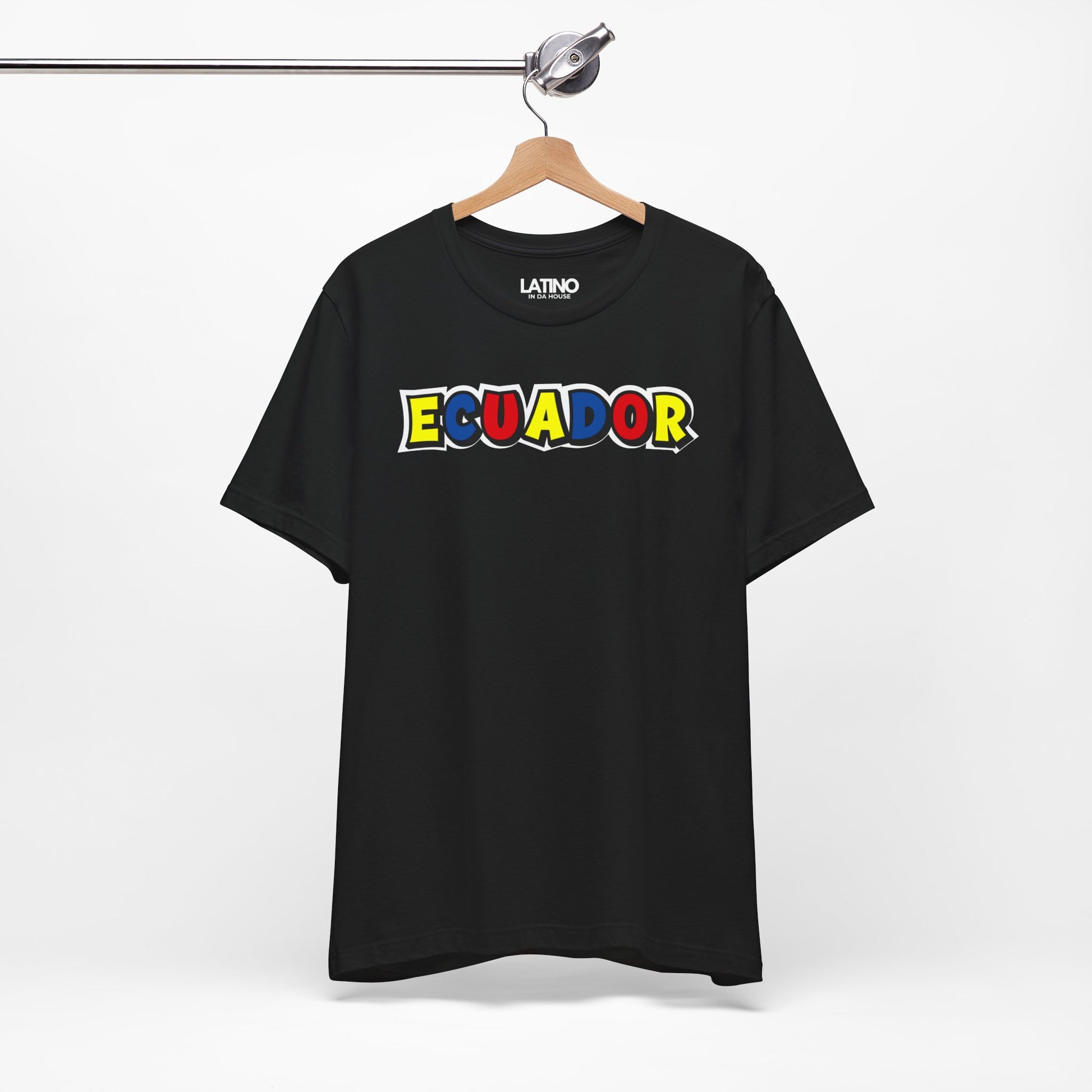 Celebrate Ecuador with this vibrant unisex T-shirt featuring bold, colorful lettering that spells out "ECUADOR." The design incorporates the national colors of yellow, blue, and red, creating a fun and striking look that showcases Ecuadorian pride. Made from 100% soft and breathable cotton, this T-shirt is perfect for casual outings, cultural events, or as a statement of national pride.
