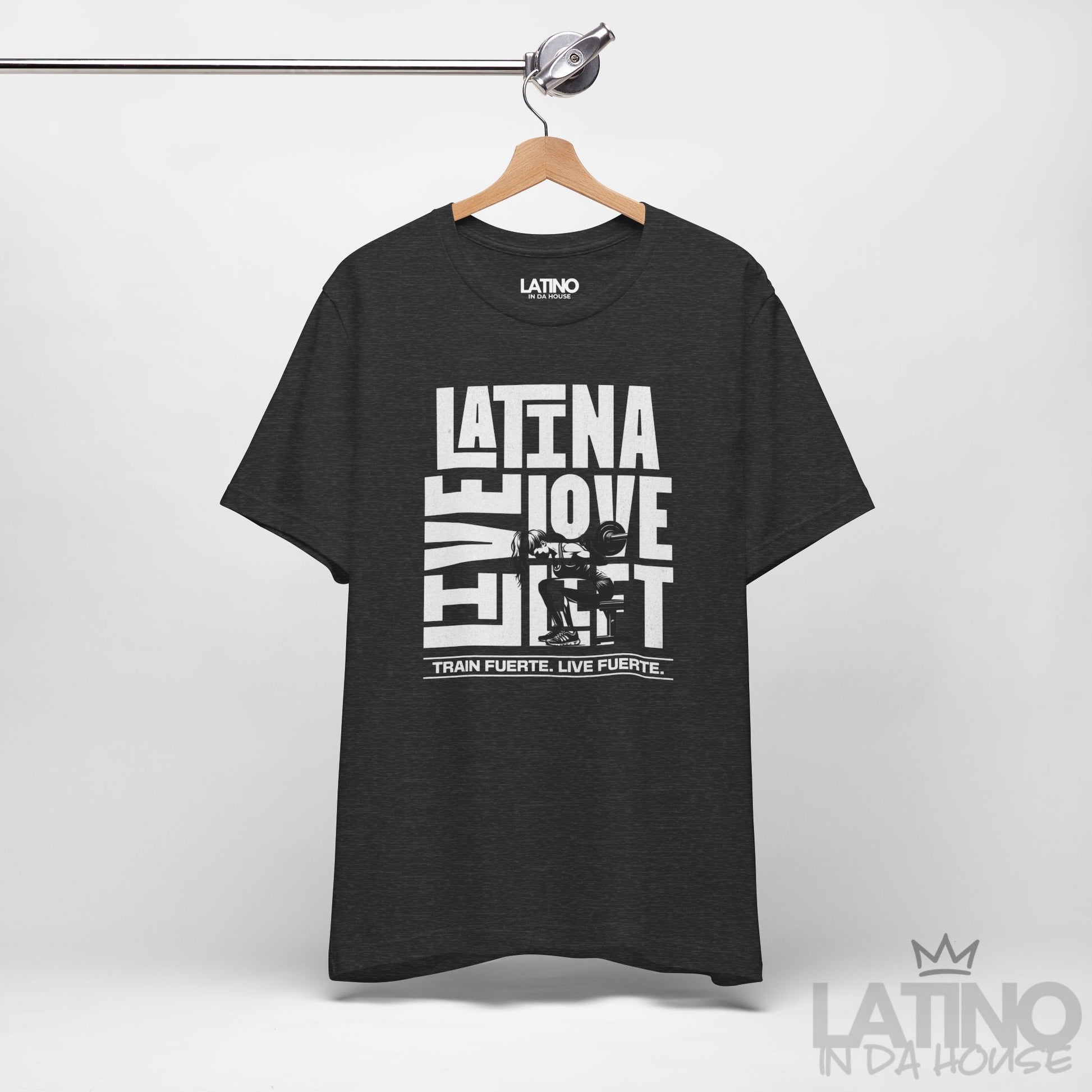 Bring the ganas to every session with our Latina • Live • Love • Lift tee featuring the mantra “Train Fuerte. Live Fuerte.” Soft heather fabric, bold graphic, all power.