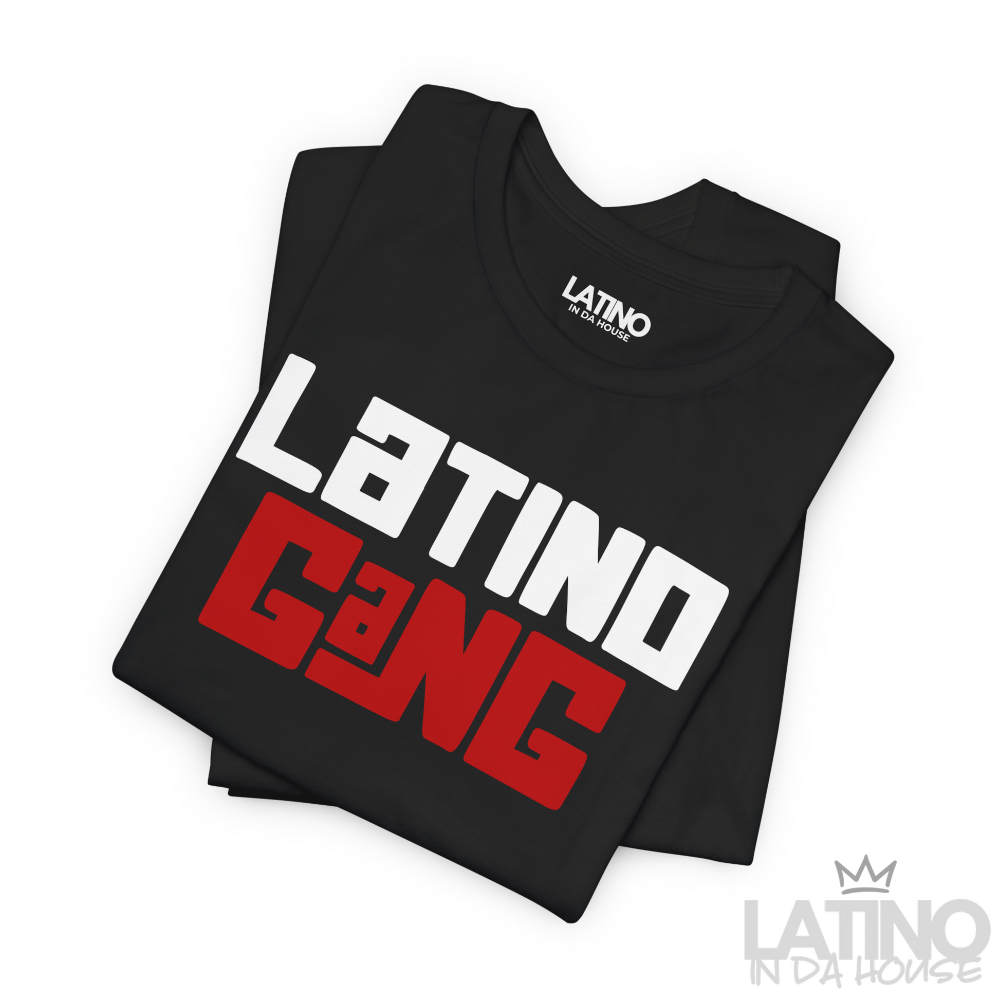 Rep your crew con orgullo with the LATINO GANG tee — a bold, street-ready design for mi gente that walks into any room with confianza. Clean block letters in blanco y rojo over a classic black base give this tee that urbano vibe you can rock all year.