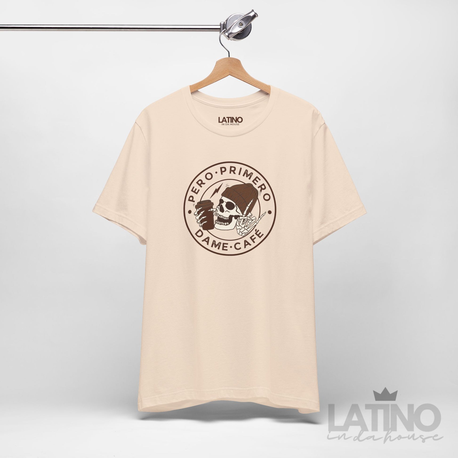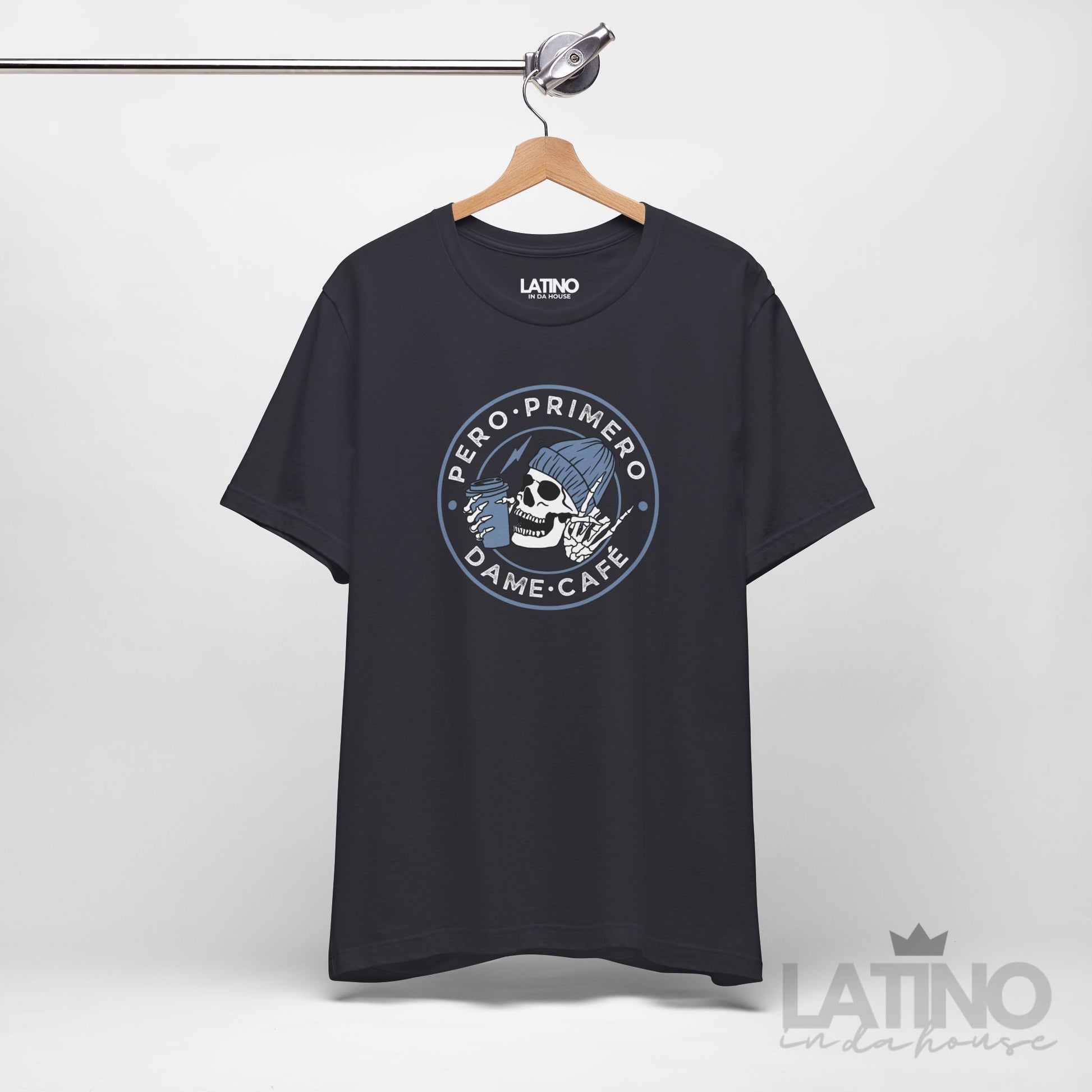 Start your day con actitud with our “Pero Primero, Dame Café” tee — a bold, minimalist badge design for cafecito lovers who don’t talk until the first sip. Clean lines, street vibe, puro Latino In Da House energy.
